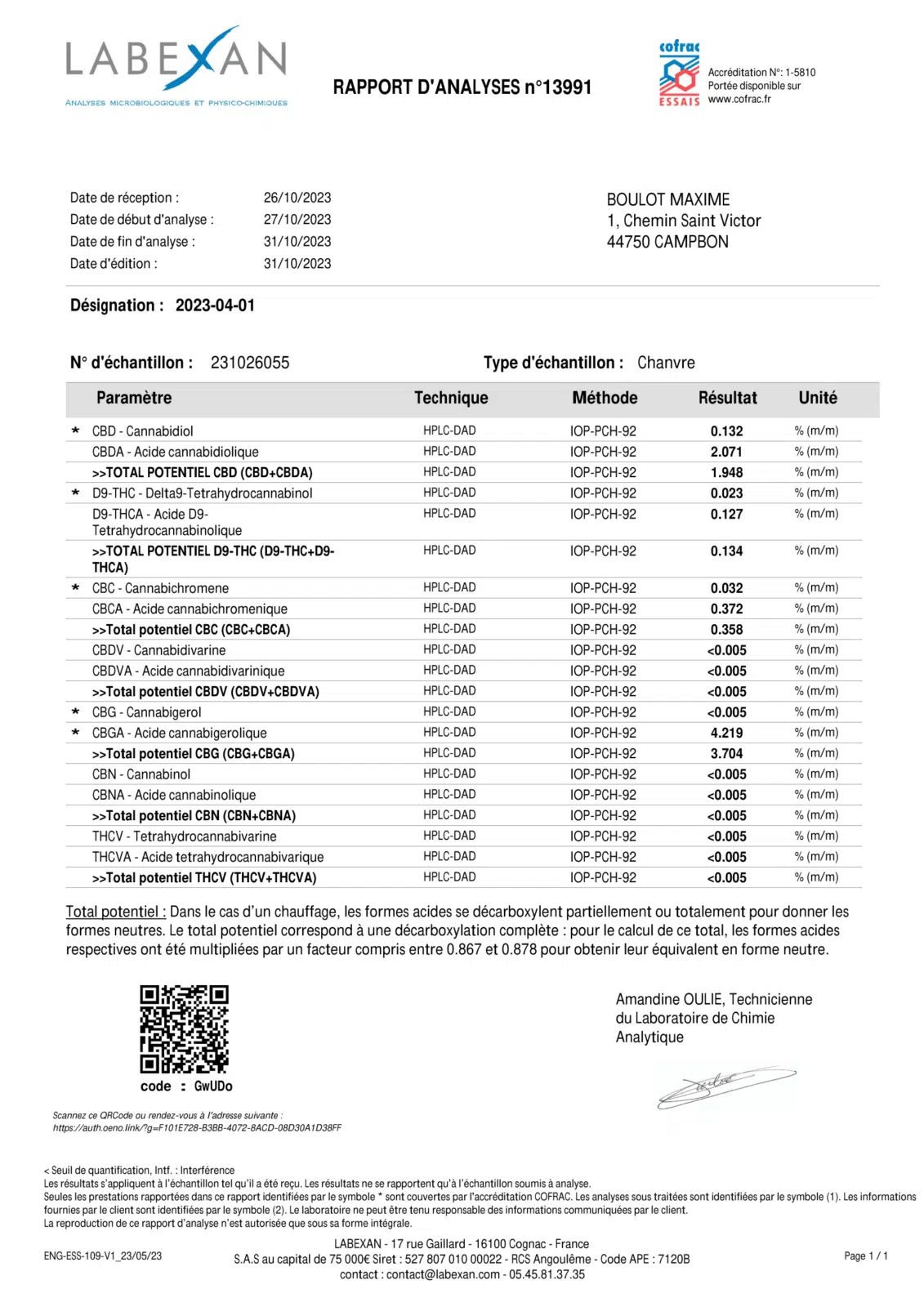 Les fleurs ne sont pas lavées, il n’y a pas de CBD/CBG synthétique ajouté, pas d’arômes artificiels.